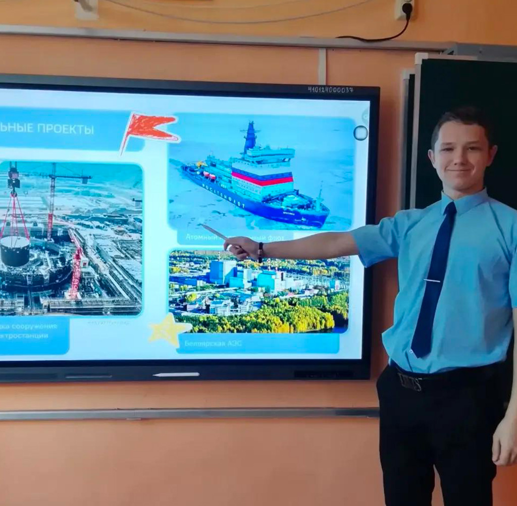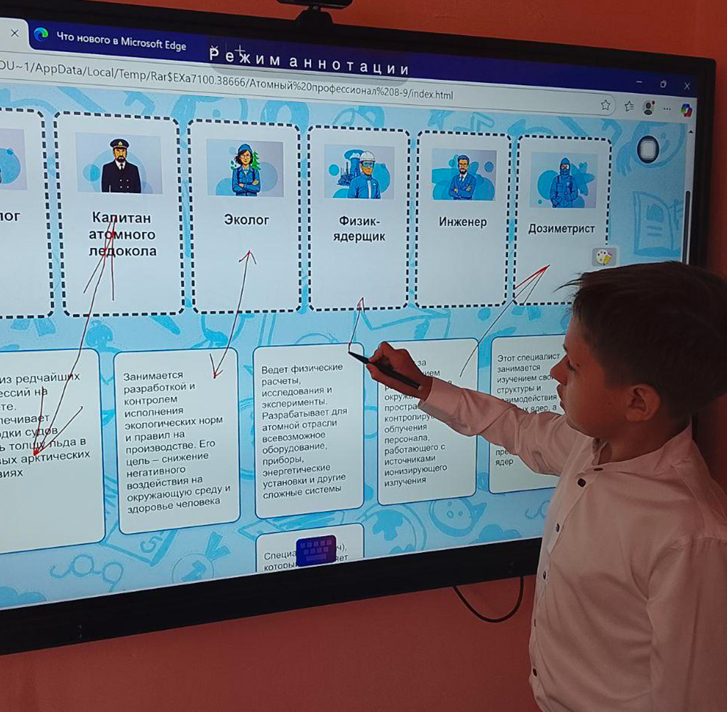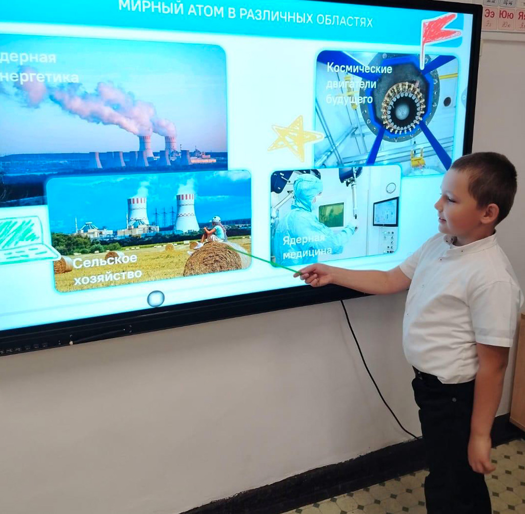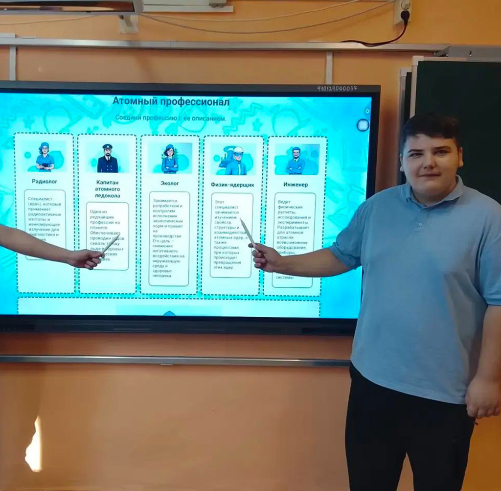 Ещё ребята познакомились с интересными профессиями, связанными с атомной отраслью, такими как физики-ядерщики, капитаны атомных ледоколов, радиологи, экологи, дозиметристы. Представление о значимости мирного атома для страны и человечества учащиеся получили в полной мере.