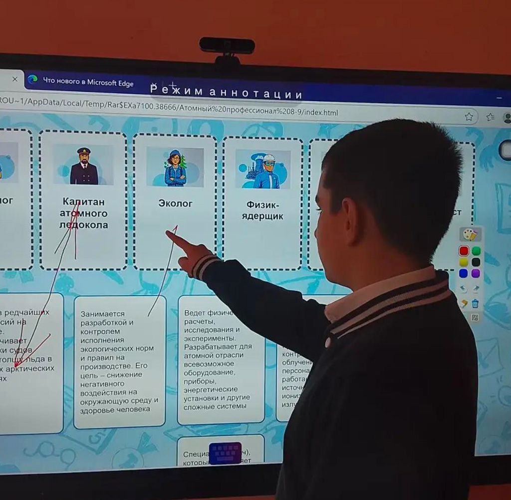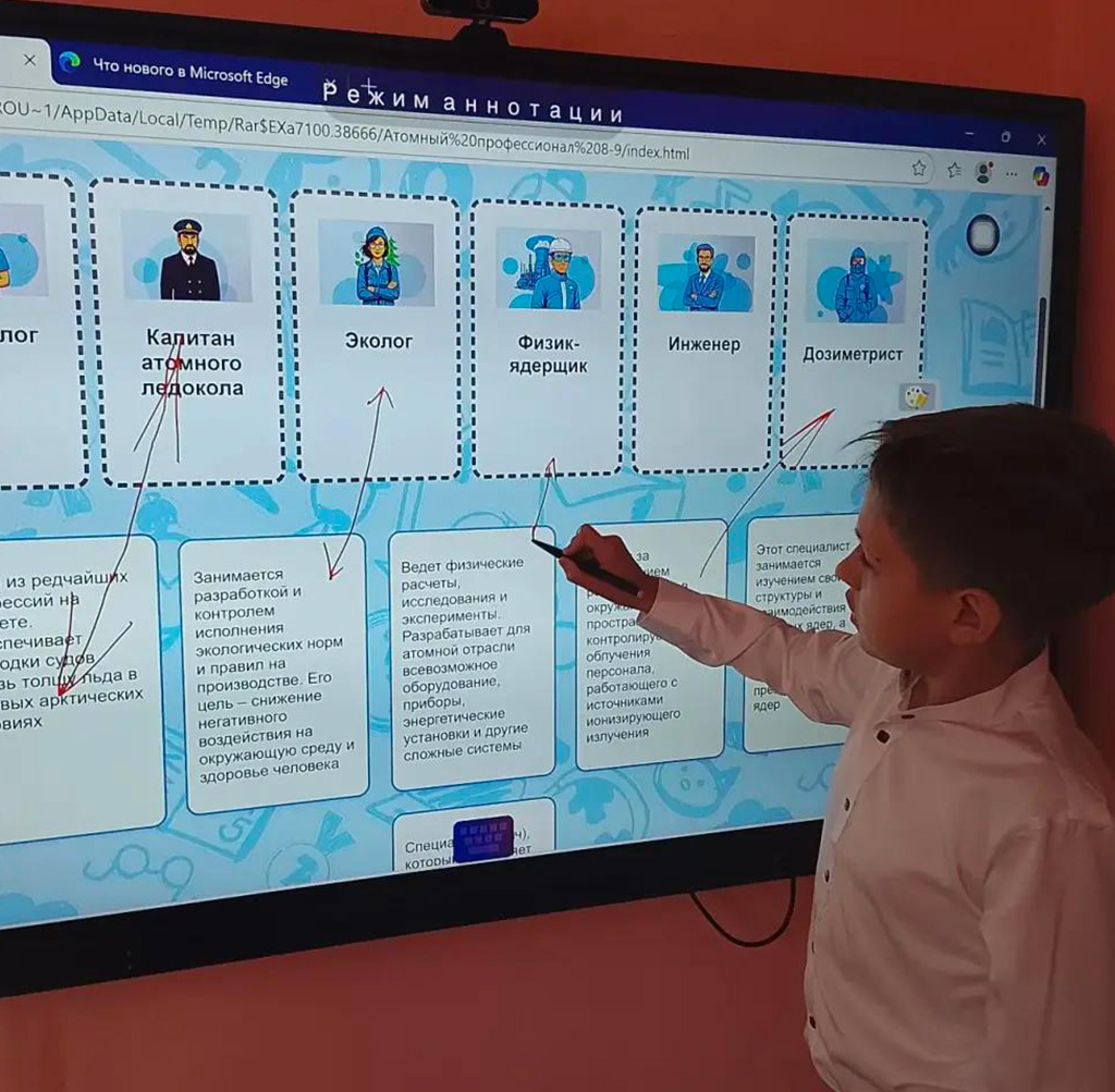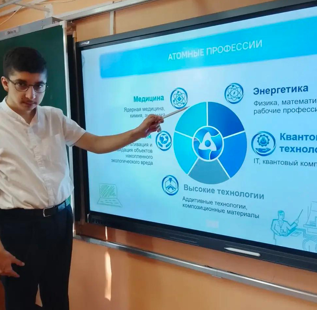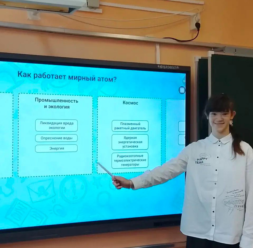 Ещё ребята познакомились с интересными профессиями, связанными с атомной отраслью, такими как физики-ядерщики, капитаны атомных ледоколов, радиологи, экологи, дозиметристы. Представление о значимости мирного атома для страны и человечества учащиеся получили в полной мере.