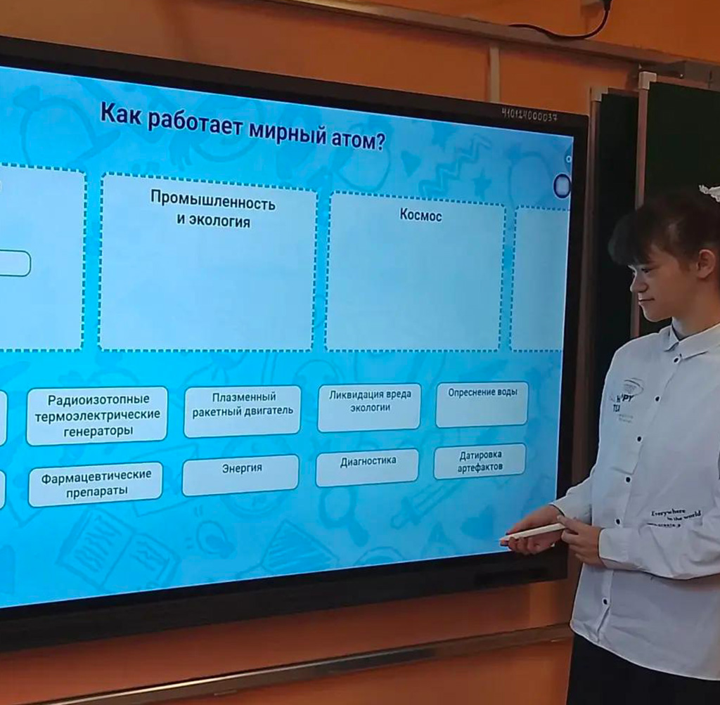 Старшеклассники познакомились с историей отечественной атомной энергетики и узнали, почему атомные технологии столь важны для страны. Ребята узнали об истории развития атомной отрасли в России, о достижениях и перспективах.